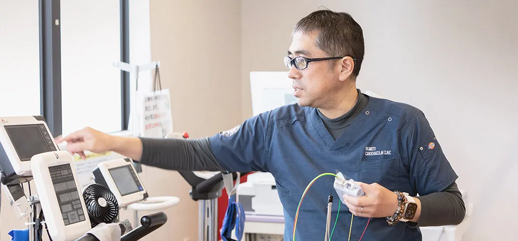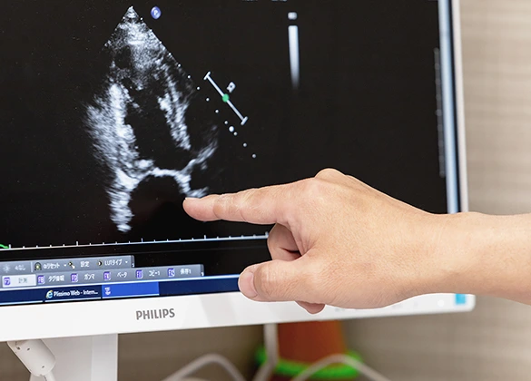 心臓分野のプロフェッショナルが連携し高レベルな検査を実施し、大病院と同等の診断力で見落としのない医療を心がけています。