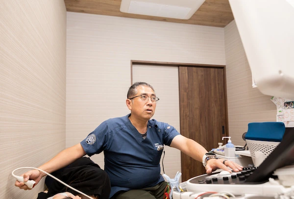 心臓の形や動き、弁の状態などを超音波で観察する検査です。胸にプローブをあてるだけで、痛みや事前準備なくおこなえます。検査時間は20~30分程度です。